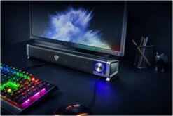 Eleganter horizontaler Gaming-Lautsprecher, für perfekte Integration unter jedem PC-Monitor oder TV-Bildschirm konzipiert.